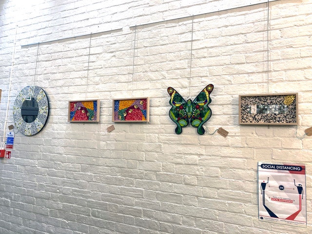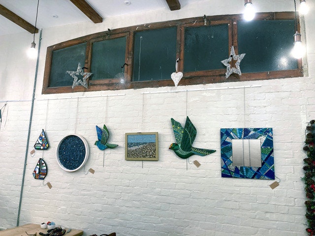 A pop-up mosaic art exhibition is on display during December 2020 at The Cafe, Topsham, Devon. Four artists are featured : Alison Hepburn, Manya McMahon, Allan Punton and Janet Ventre.