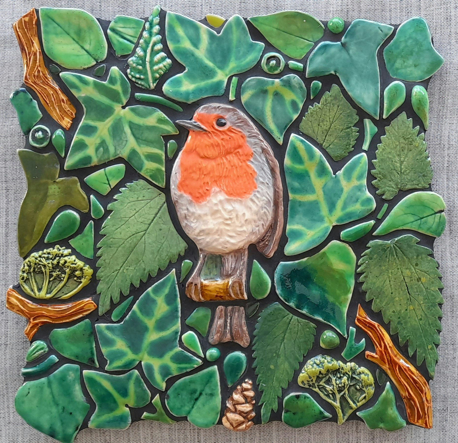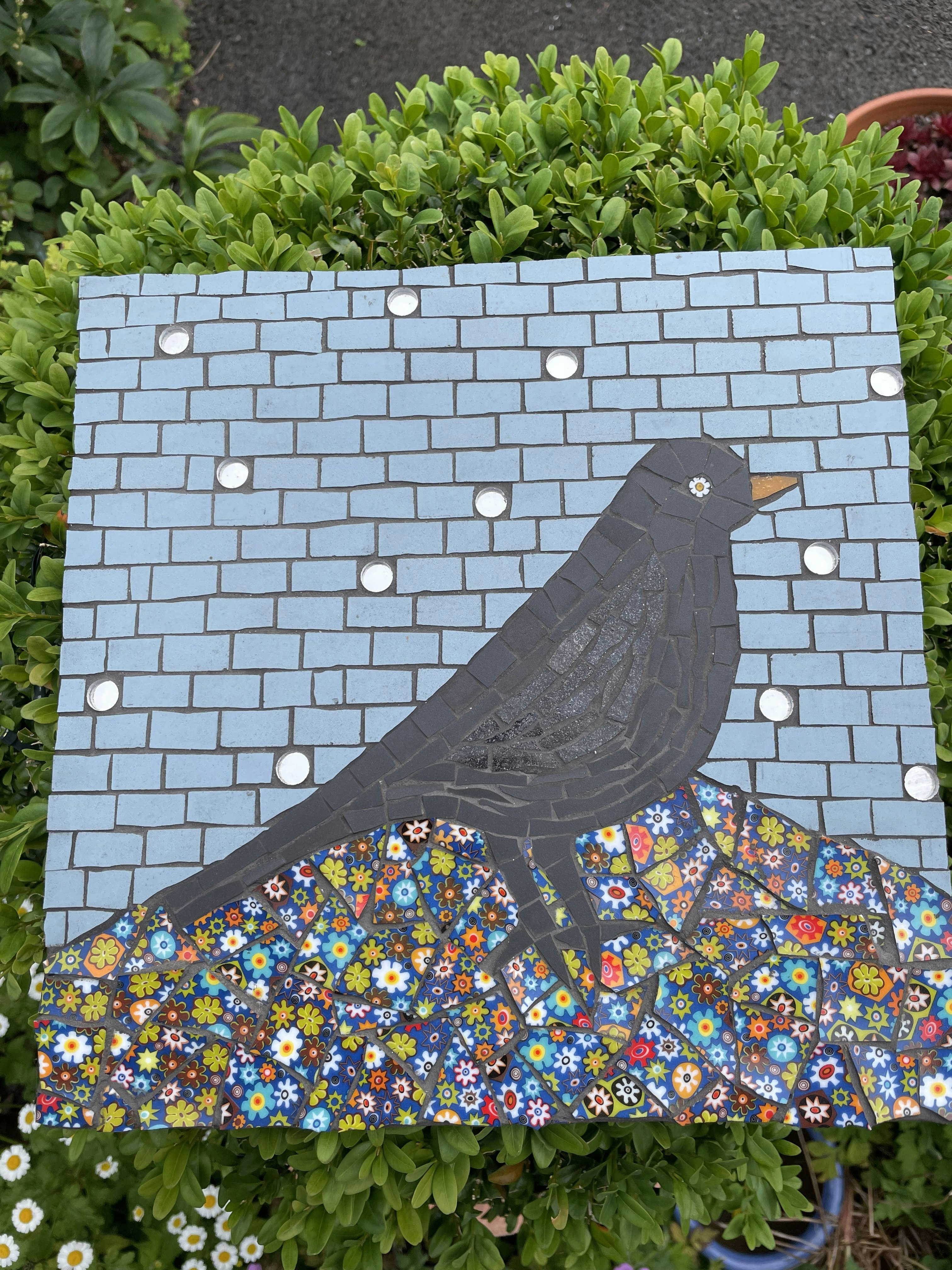 | The blackbird has the most beautiful evening song that lifts the heart of the garden wherever you are. I am drawn to the outside life and it plays a big part in my mosaic making. |