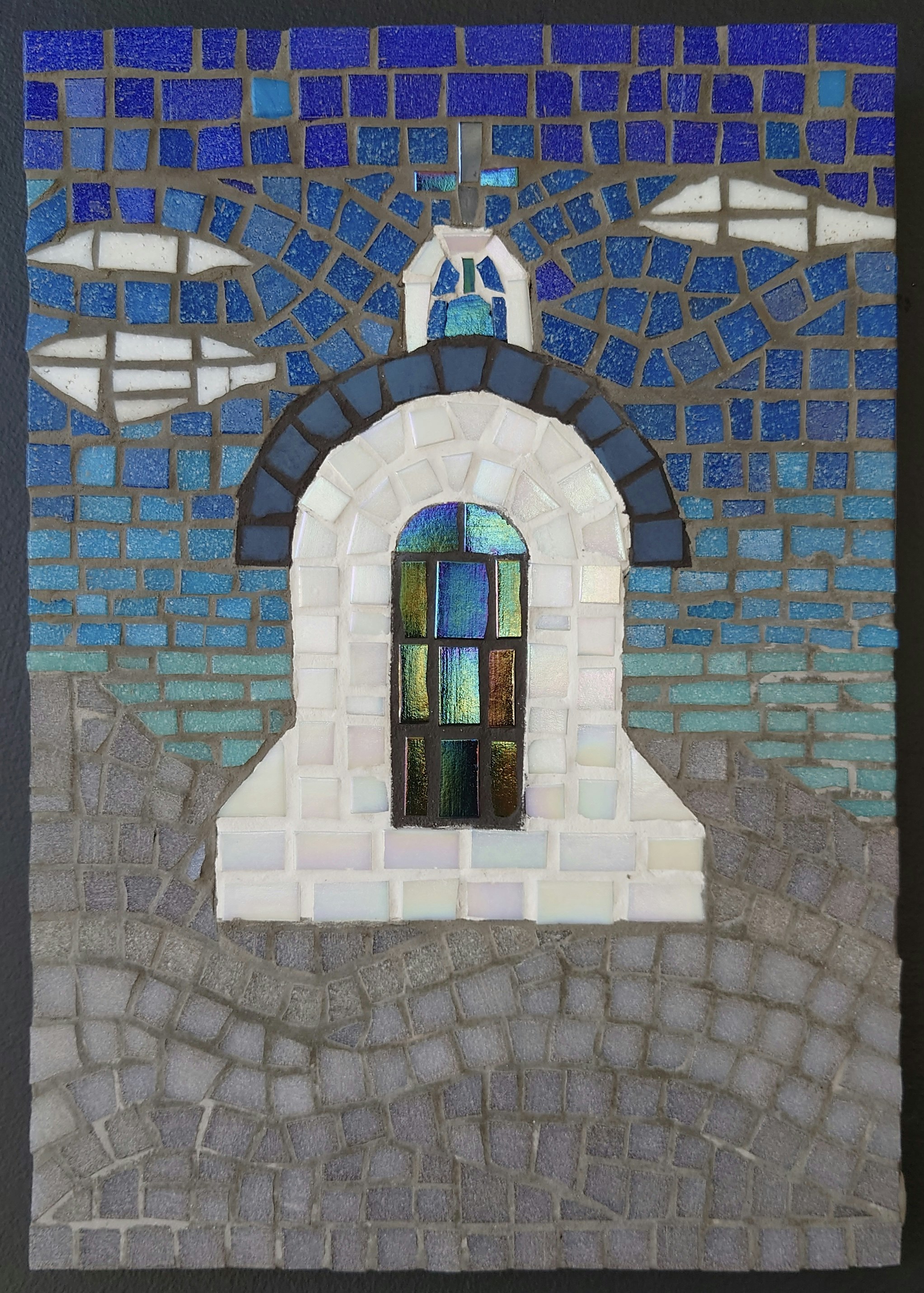 | In the summer of 2023 we travelled by ferry through the Cyclades in Greece. On the island of Naxos we came across an everyday yet beautiful Greek scene -a remote church, atop a rocky ridge with the azure Aegean Sea in the distance behind. |