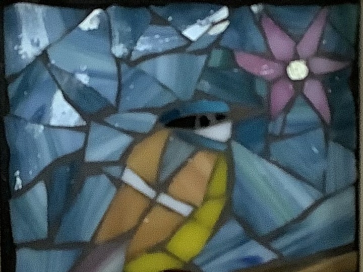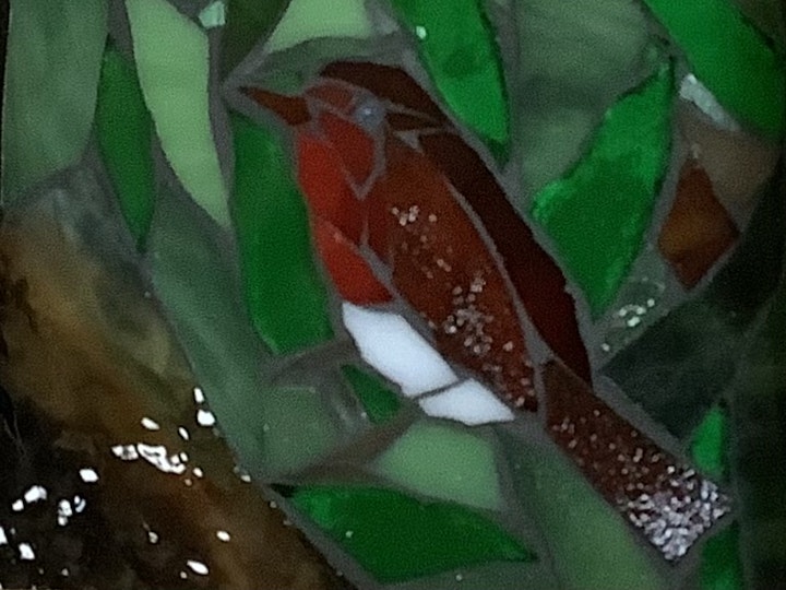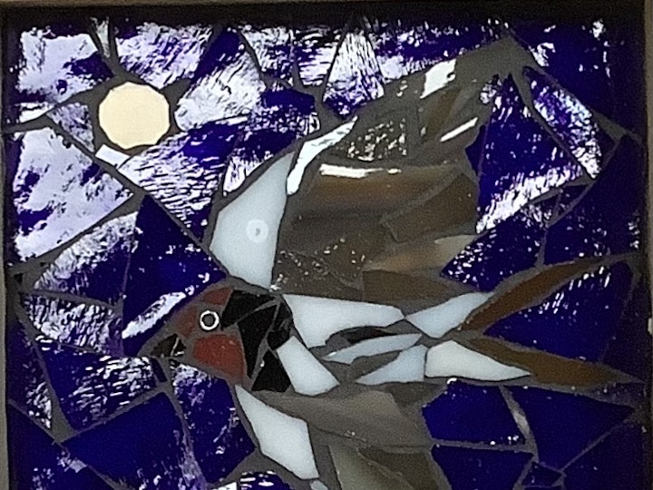 The artists have created these pieces using the same small size for their compositions, but the inspirations and thus the results are very different. Janet works at Cockington Craft Centre in a beautiful country park in Torquay and is inspired by its wildlife, particularly the birds that visit all year round, using them as a starting point for her collection. Used to working in much larger sizes, Manya decided not to plan in advance, but to start with a favourite piece of stained glass and see where that led her, thus achieving a very spontaneous result.